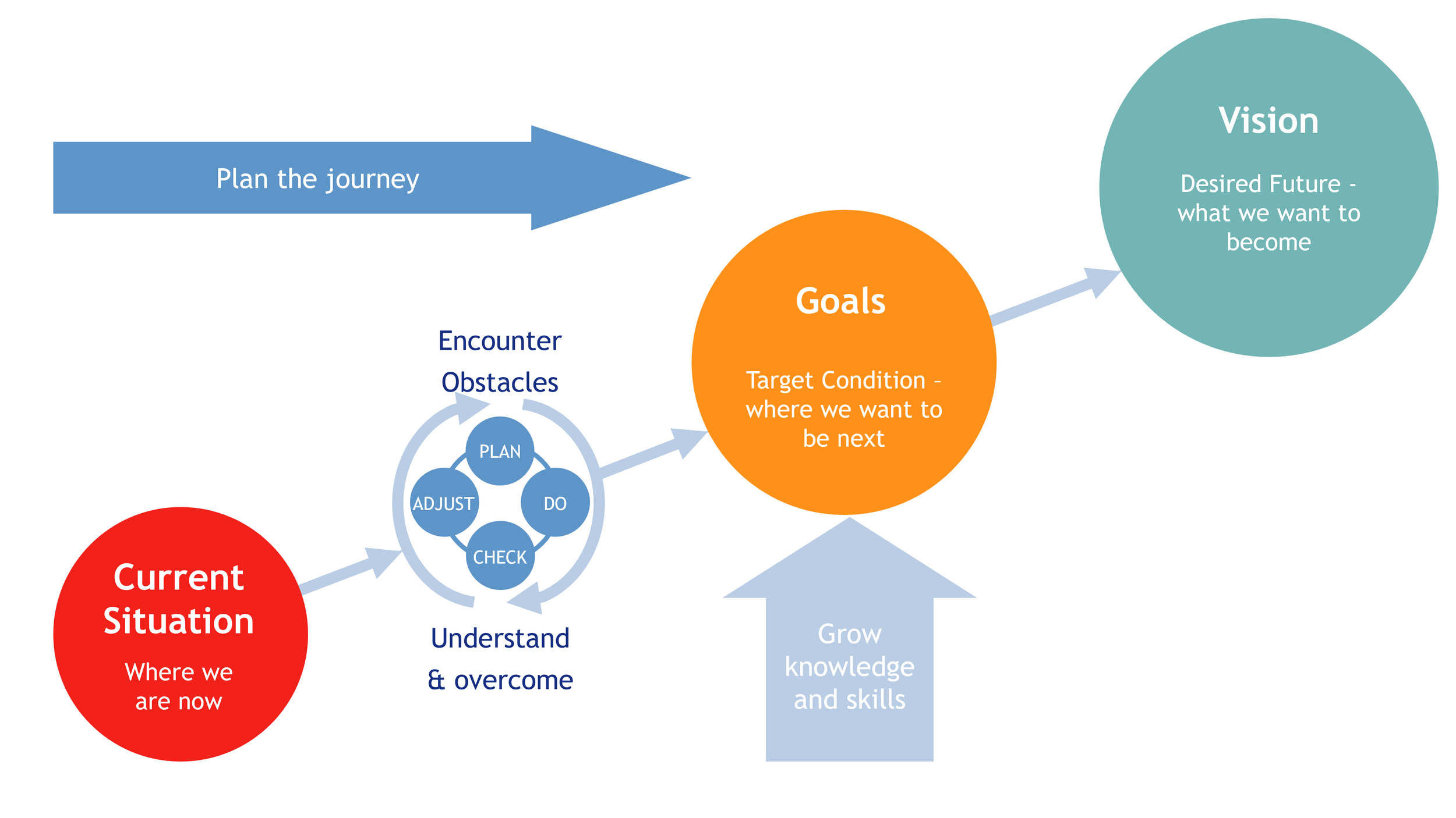 A great question to consider is “what conditions do we need to create for the goal to be achieved?”