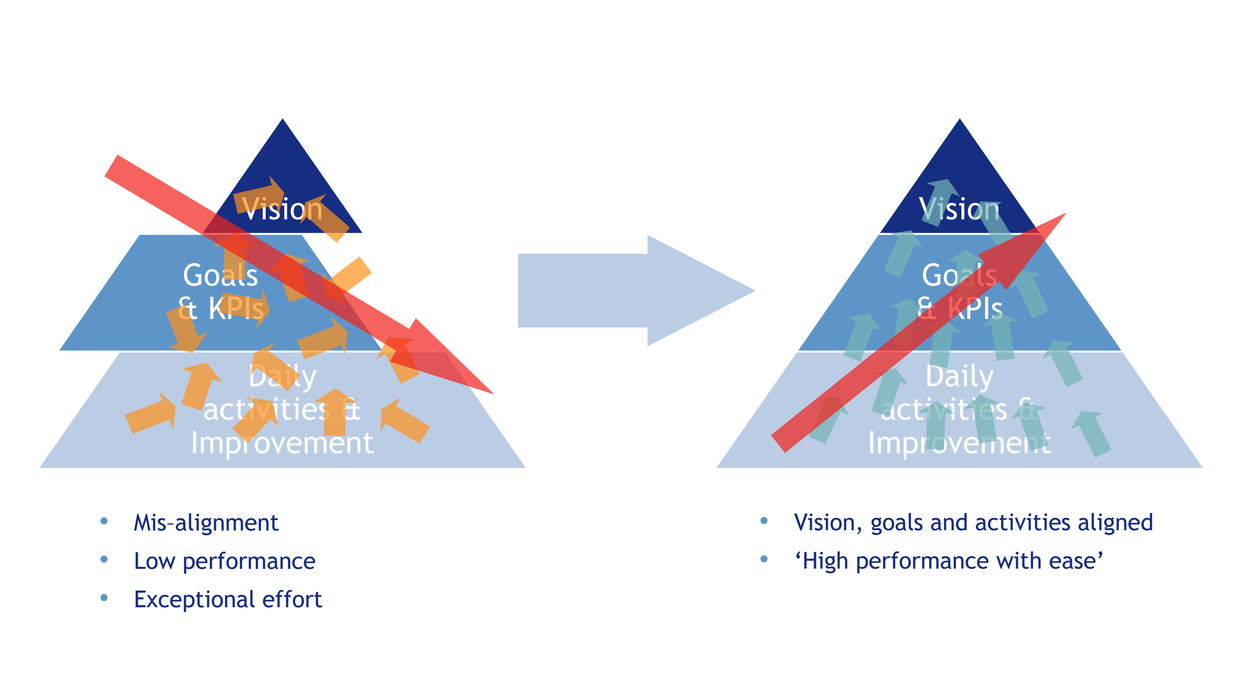 The goal setting process can be much more powerful if each department’s and team’s goals are aligned to the overall Purpose and Vision for the organisation.
